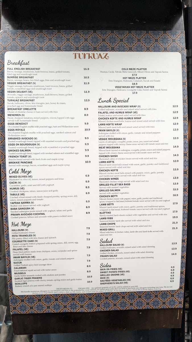 What sets Turkuaz apart is its commitment to freshness and authenticity. Ingredients are clearly chosen with care, and each dish reflects the depth of Turkish culinary traditions. The menu also caters well to dietary needs, with vegetarian, vegan, and gluten-free options clearly marked and thoughtfully prepared.